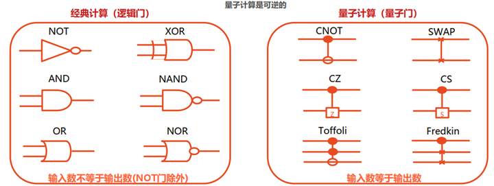 可逆计算是量子计算的一种特殊性质。 可逆计算就是可以逆转的计算, 即可以从输出状态正确推断出输入状态的计算。 经典计算中的NOT门就属于可逆计算, 因为我们可以从输出值正确推断出输入值——若NOT门的输出为0, 则输入必为1;若输出为1, 则输入必为0。 而对于AND门, 若输出为1,可以推断出输入必为11, 但如果输出为0, 那输入就有00、 01或10这3种可能, 因此无法确定输入到底是哪一种。 由于计算不能逆转(无法根据输出计算输入) , 所以AND门不属于可逆计算。 在量子计算中, 所有量子门的输入数和输出数都是相等的, 意味着量子计算是可逆计算。
