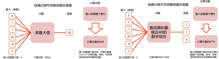 当输入的数据个数为N时, 计算次数大约为𝐾𝑁(K是整数) 。 即, 随着N的增加, 计算次数呈指数增长(需要指数时间) 。 学界将具有这种可能性的问题称为在多项式时间内无法求解的问题, 也就是经典计算机面临的棘手问题。