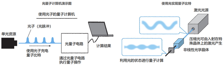 光量子技术获取量子比特可在室温下进行。 该方式有望通过与名为硅光子学(silicon photonics) 的光波导(optical waveguide) 芯片制造技术和光纤等光通信技术相结合来实现量子计算机。 量子力学中, 光既是波又是粒子。 光子本身就是微弱的光, 使用光子的量子计算机既可以在室温下运行,又与光纤通信具有良好的兼容性。
