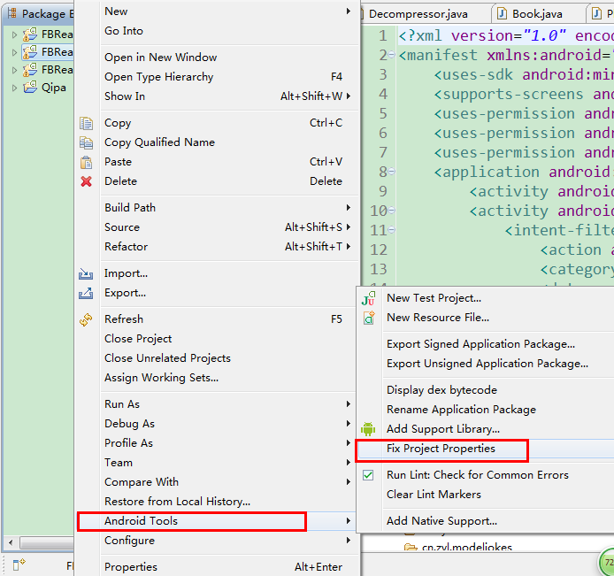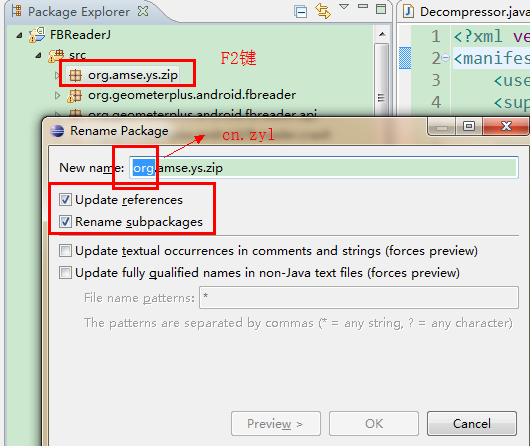 将AndroidManifest.xml文件中的org全部替换为cn.zyl
