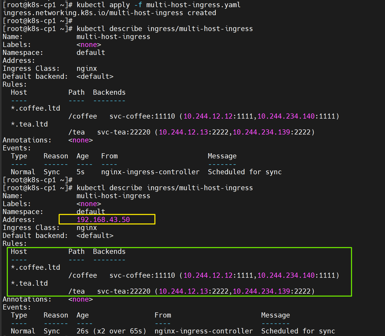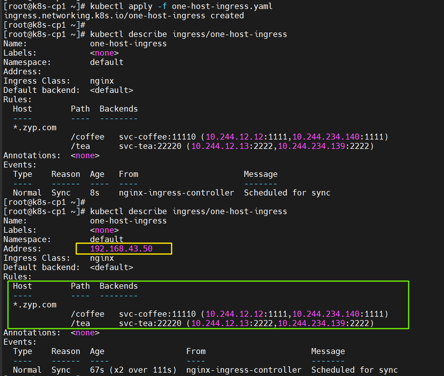 注意输出展示的Rules中,Ingress通过服务已直接获得后端Pod的IP与端口,因此通过Ingress分发时可直接一步到位分发至Pod。