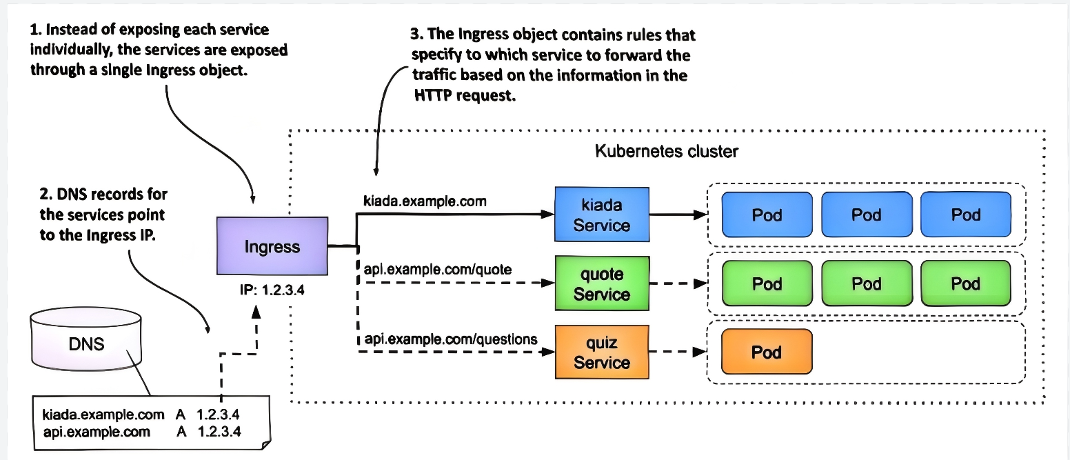 - Ingress Resource 就是定义的HTTP或HTTPS分发规则Rules。比如通过yaml清单文件创建kind为Ingress的Kubernetes资源定义。