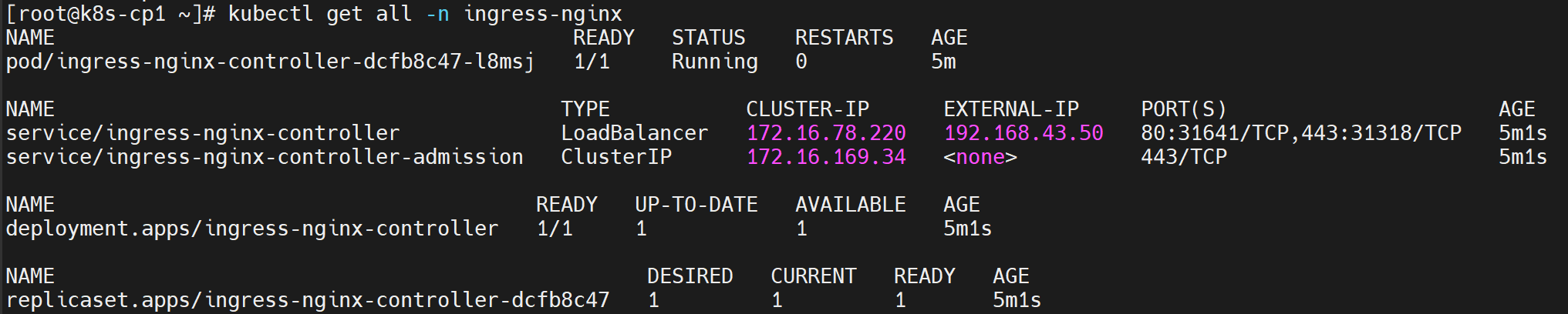 - 1个Deployment,使用镜像“registry.k8s.io/ingress-nginx/controller”