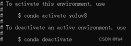其中,“yolov8”为环境名,可以修改;“python=3.8”为python版本;“anaconda”输入进去后会创建一些包,使用更方便。看到如下代码,证明创建成功。如果创建不成功可能是网络问题,可以开热点重新运行以上命令。