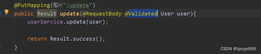 定义好注解之后我们还需要在对应的接口的实体参数前面添加注解,才能生效