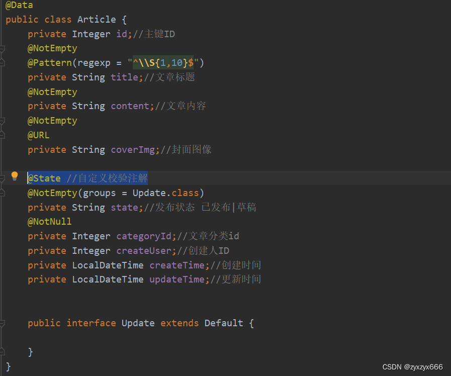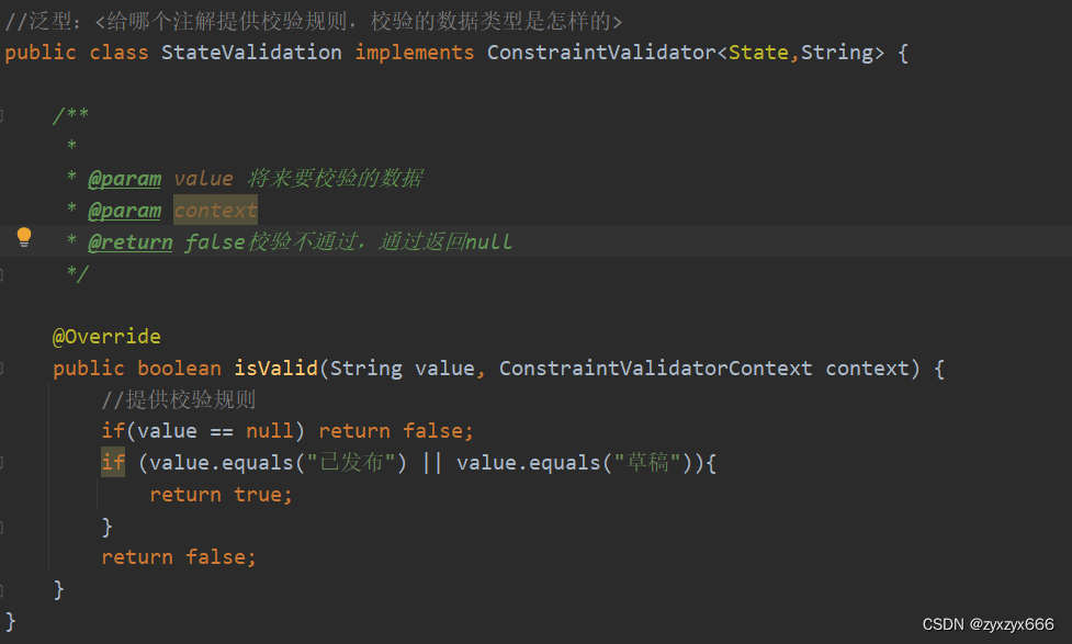 例如state参数内容必须是'已发布'或者'草稿',这个时候我们需要用到自定义注解