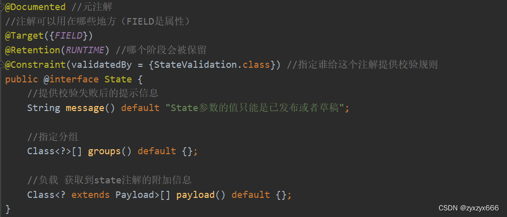 1. 自定义注解 State(里面必须提供三个属性)