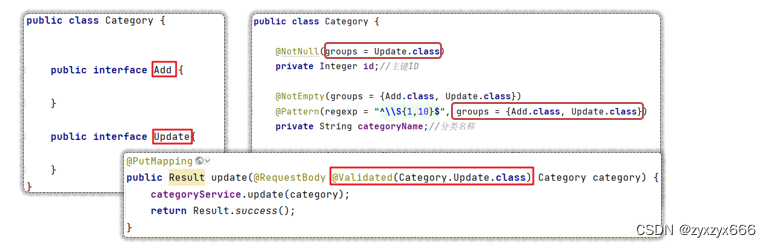 例如在添加文章时指定某些校验的注解生效,更新文章时也指定某些校验的注解生效