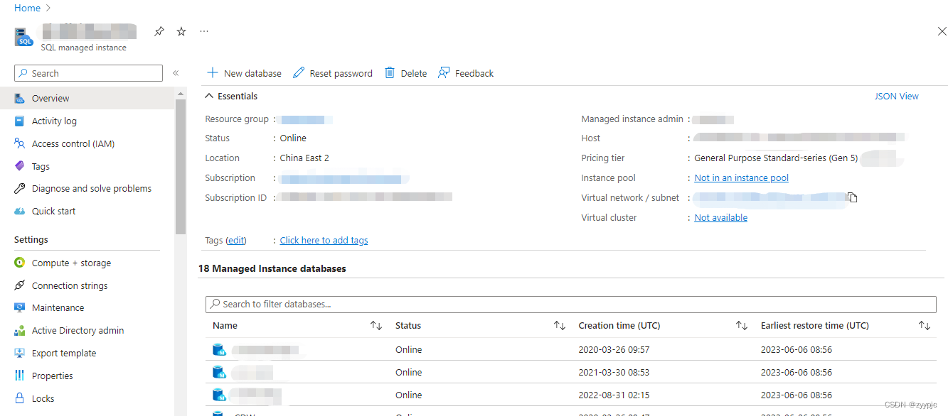 本文采用的是Azure SQL托管实例环境,在一个实例上面下辖多个云上数据库。