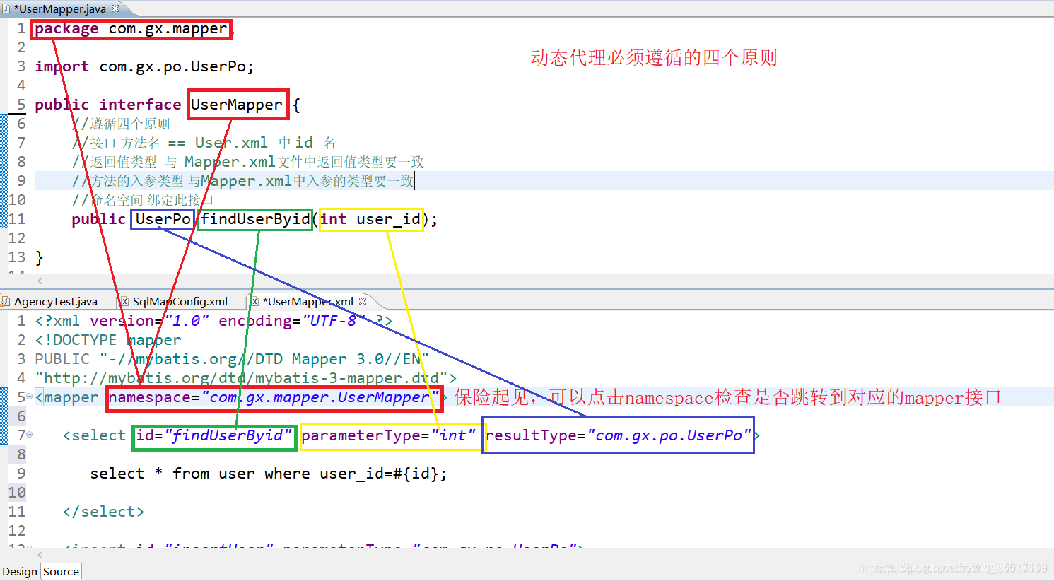 Mapper接口开发需要遵循以下四个规范(建议初学者结合下图理解):