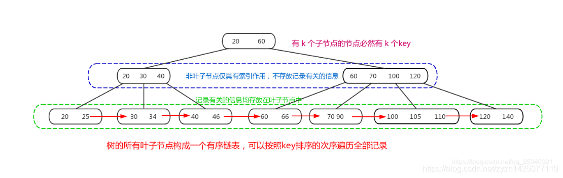 (2)非叶子节点仅具有索引作用,跟记录有关的信息均存放在叶子节点中。