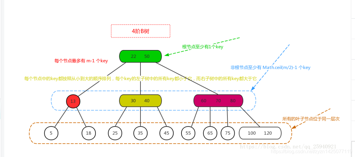 (3)非根节点至少有 Math.ceil(m/2)-1 个key;