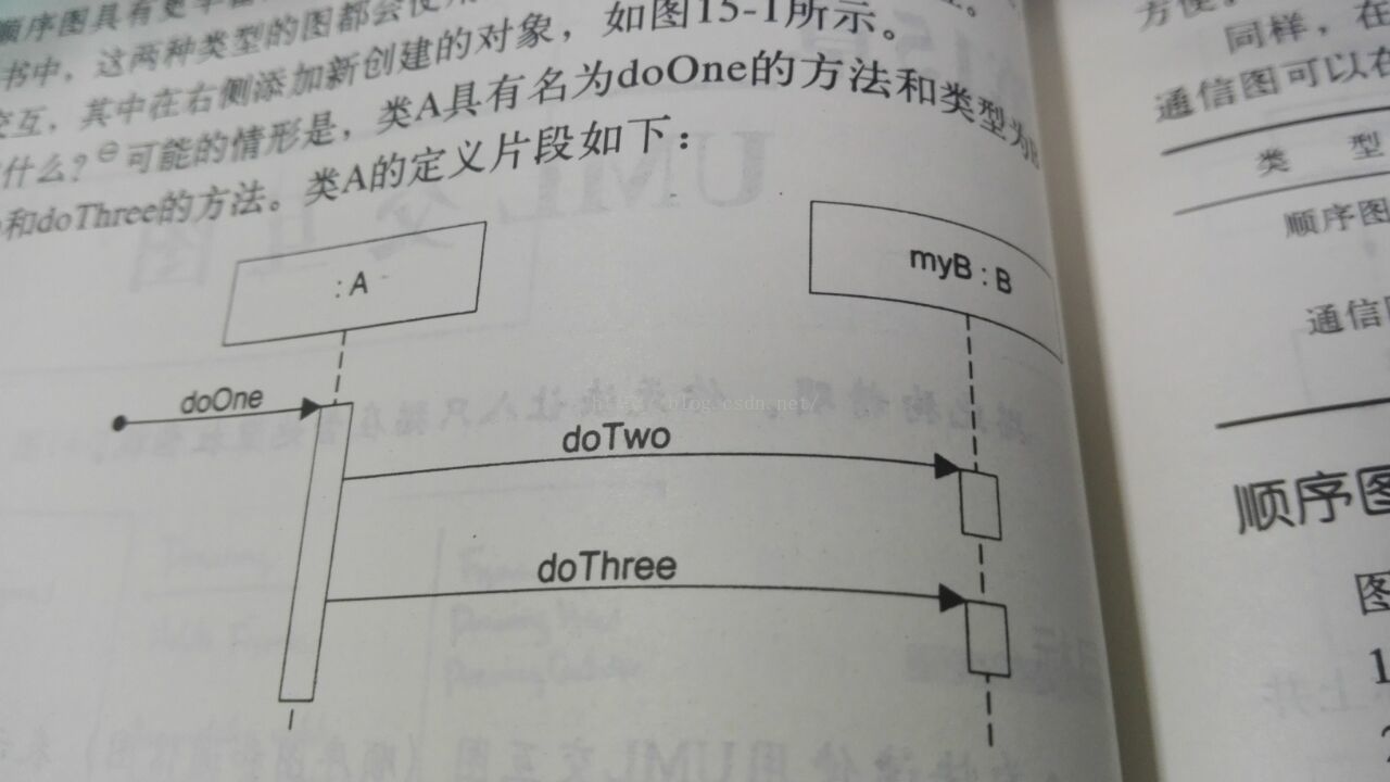 即在类A中有方法doOne,在doOne方法中调用了类B中的方法doTwo和doThree方法。