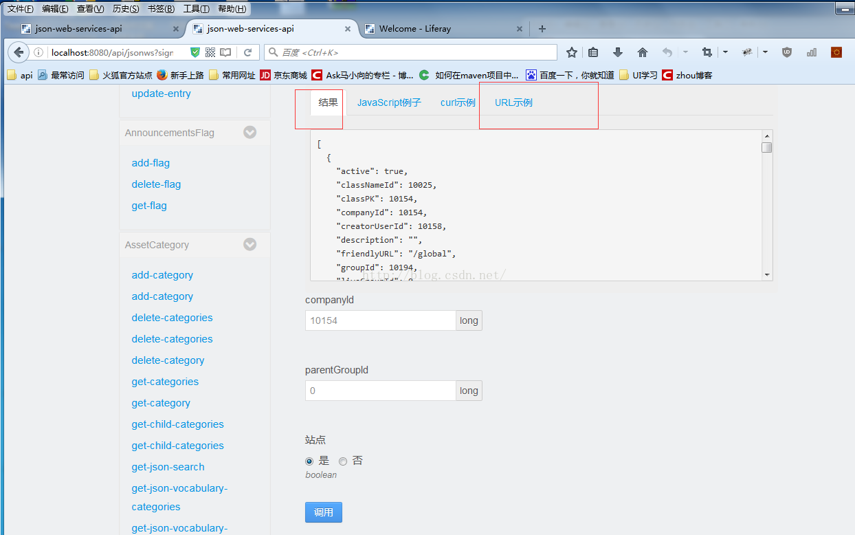 本地可以运行liferay,此时api为http://localhost:8080/api/jsonws