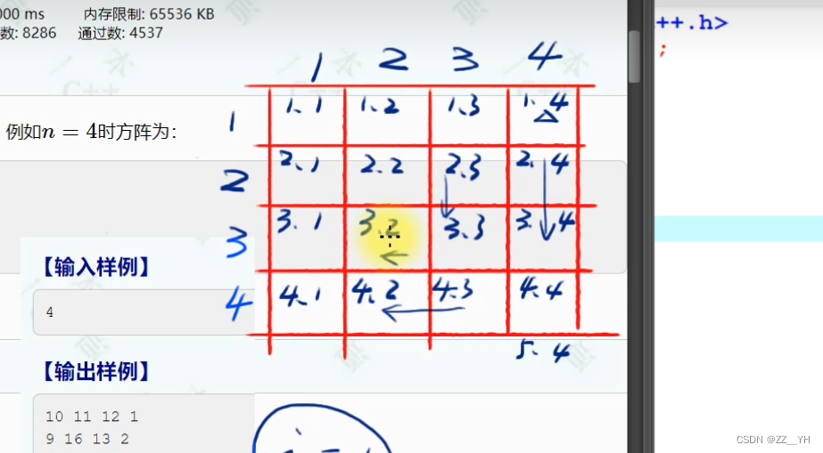 while (i <= n * n)//i每走一步加一,总个数小于矩阵数字个数