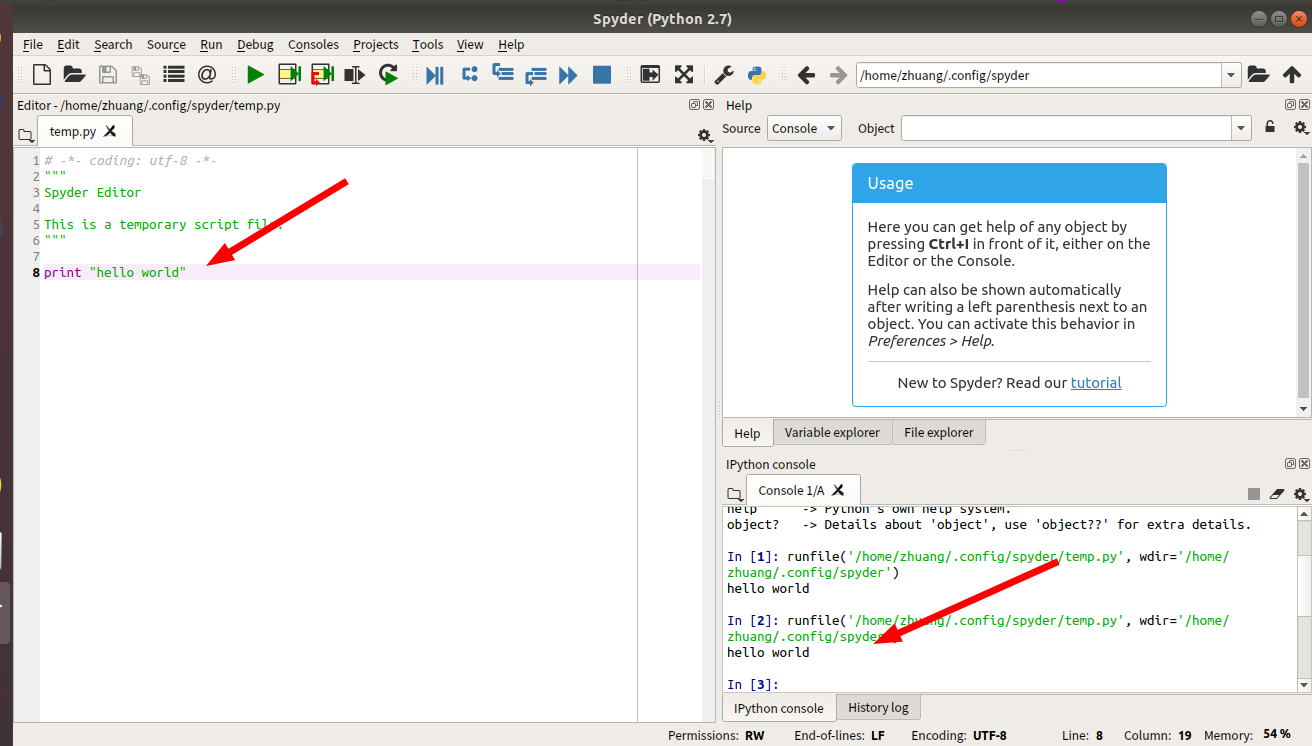 重新运行,并且输入一个比较简单的helloworld程序,成功输出,到这里anaconda2的安装完成:
