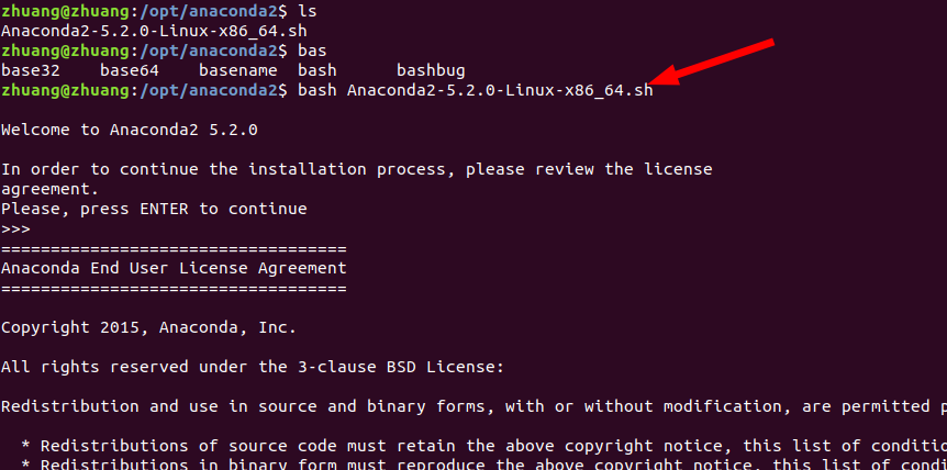 1 bash Anaconda2-5.2.0-Linux-x86_64.sh