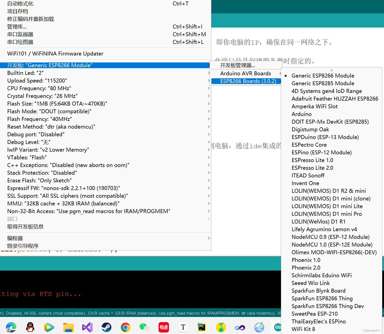 烧录到ESP8266使用的软件是arduino,具体配置环境比较麻烦,配置了很久都不成功,看了网上很多文章才配置成功环境