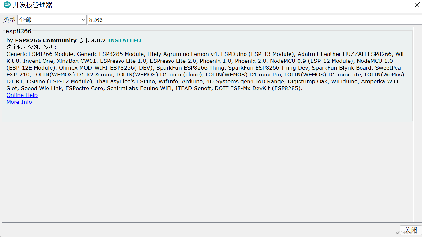 下载完后,再次回到开发板中安装8266即可配置好环境。