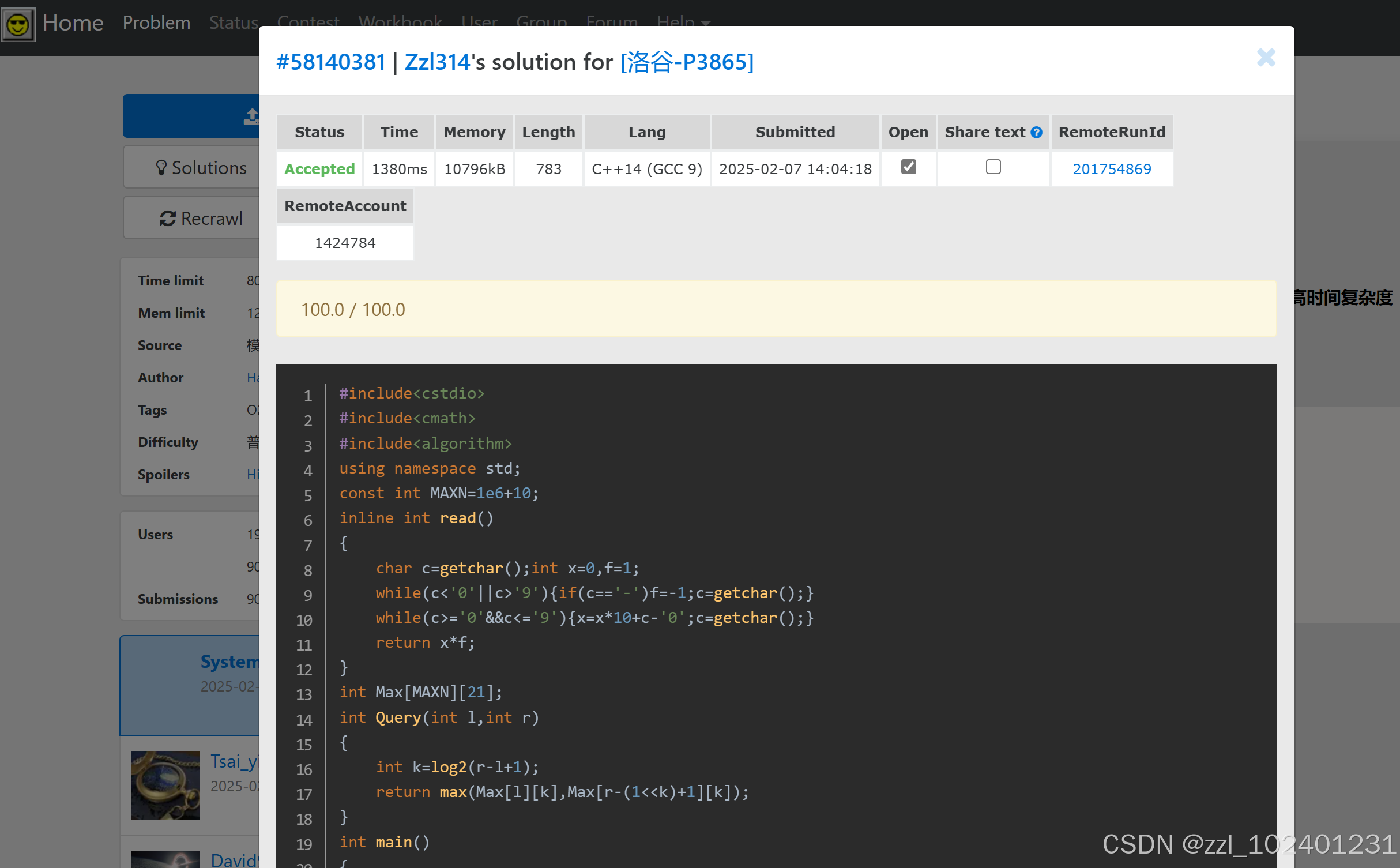 第二题:ST 模版,因为时间很严格,所以可以用快速读入