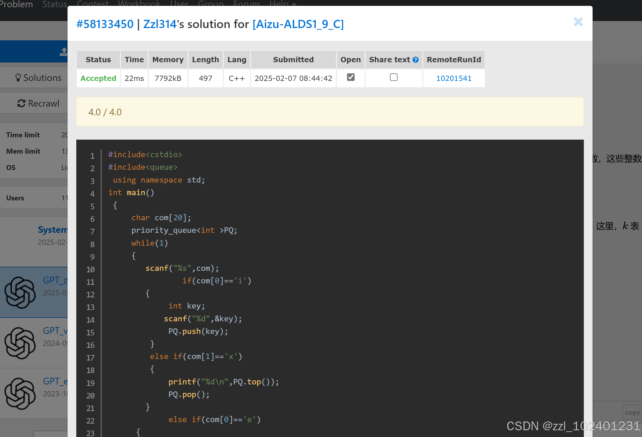 第一题:用queue队列的push和pop匹配插入和返回最大值操作,判断输入的是什么单词,然后做出对应操作,end跳出循环。