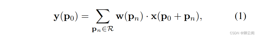 传统的卷积结构可以定义成公式1,其中是输出特征图的每个点,与卷积核中心点对应,假设我们有一个像素p0,pn是p0在卷积核范围内的每个偏移量。