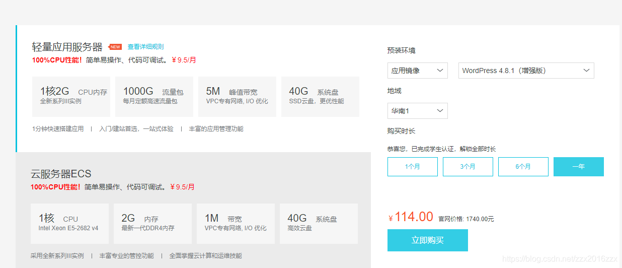 因为小编闲着无聊,尝试着自己搭建自己的网页,首先我选择的是阿里云服务器,因为阿里云服务器对学生有优惠,因此价格便宜。
