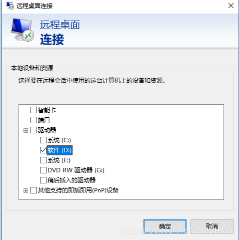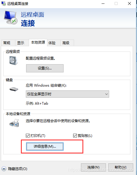 2.4、选择【本地资源】然后选择详细信息,选择本机和服务器共享的本机磁盘