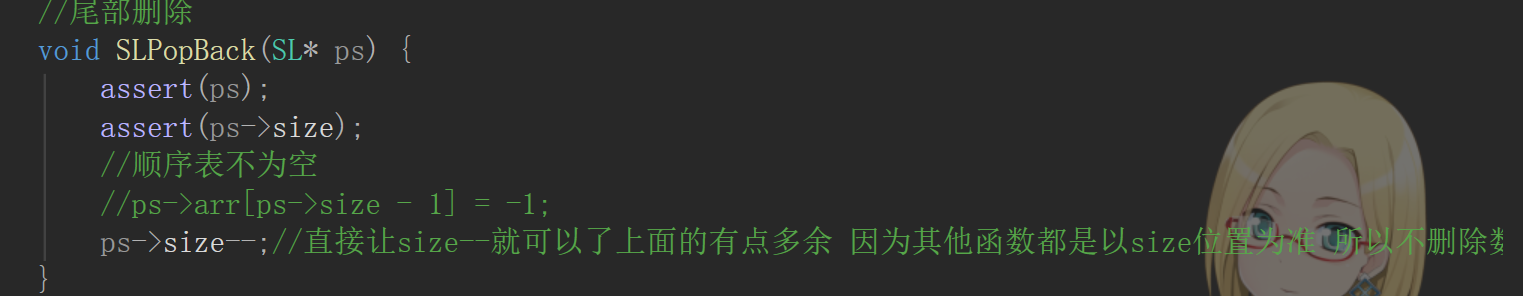 💡 为什么不用手动修改最后一个数据?因为size是有效长度的标志,后续访问和插入都会以size为依据,原最后一个数据会被视为“无效数据”,不会被访问到,下次尾部插入时会直接覆盖。