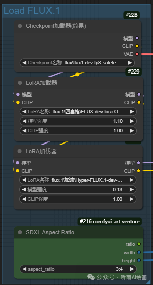 接下来,我们就来看下具体的工作流,工作流节点有点多,一张图是放不下了,我们捡着重要的讲一下吧,工作流以及 Lora 模型听雨会放在文末的网盘里,需要的小伙伴自取。