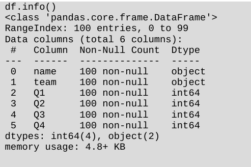 df.info() # 查看索引、数据类型和内存信息